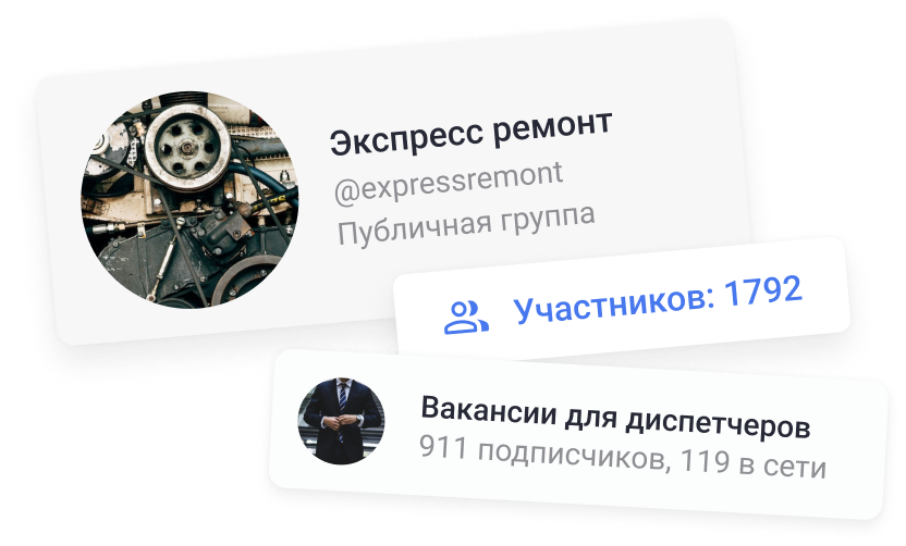 Вступайте в сообщества, создавайте публичные или приватные группы для командных обсуждений. Делитесь новостями, вакансиями и многим другим в каналах.